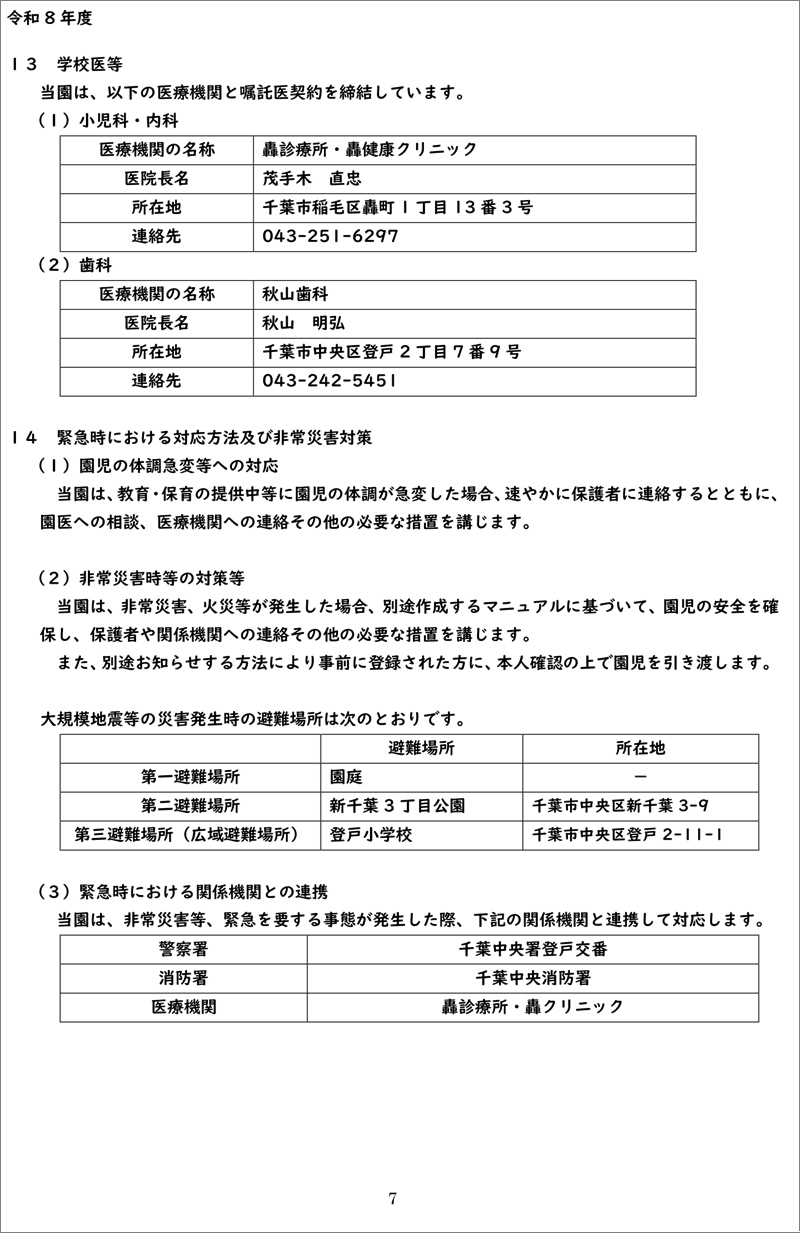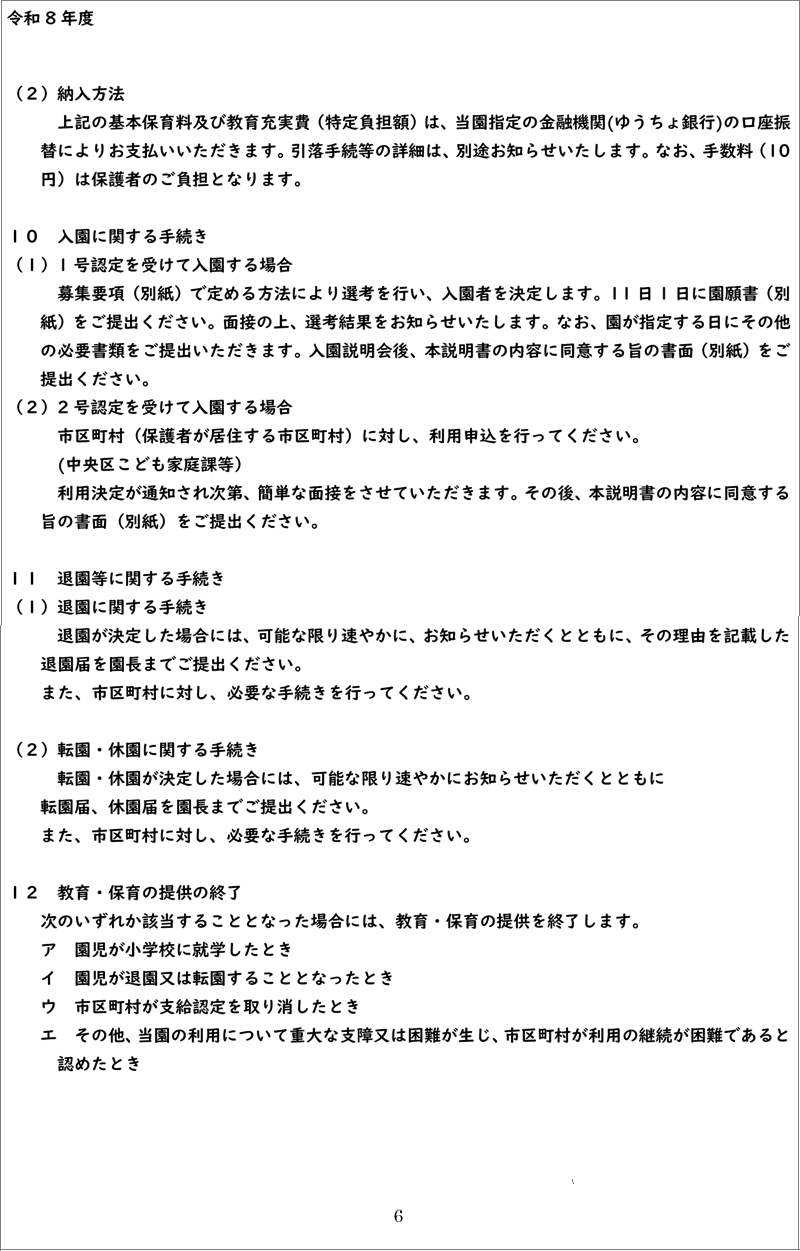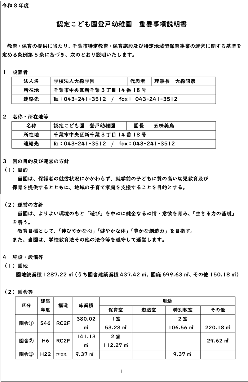 『 令和8年度 登戸幼稚園 重要事項説明書 』